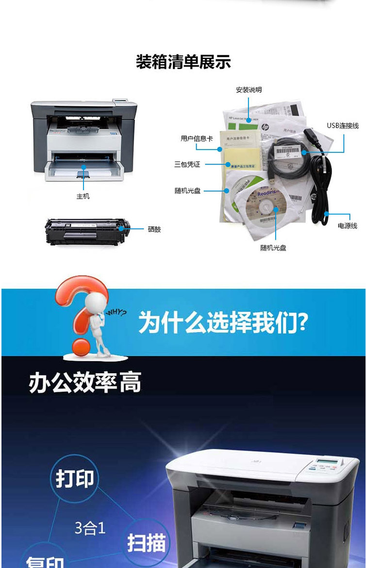 惠普(HP) M1005 黑白激光打印機(jī)多功能一體機(jī)